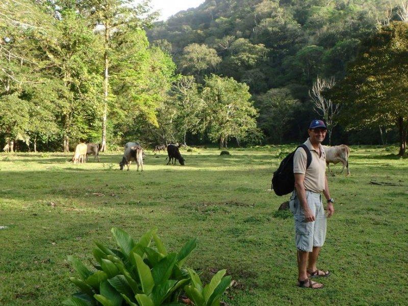 By 10:00 am we left behind a cattle farm, and we entered the jungle of the National Park Portobelo. There is a path but not very traveled so it tends to disappear. Thank goodness Manuel was with us !