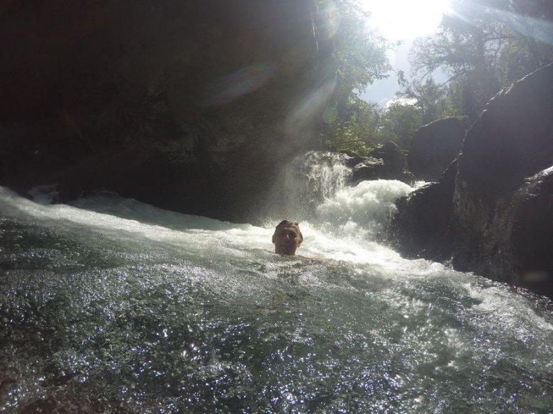 After picking up the camp and hiding our backpacks we resumed the trek upstream and in about an hour we had reached our goal ... The Waterfall of Los Monos. No matter how many photos I saw on the internet. I was impressed ! Above all because I did not find any photo that showed the flow that I had at that moment. Unfortunately, by then, my GoPro camera had drowned. Here the sun rose for the first time, opportunely to mock us.