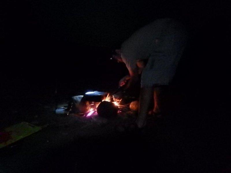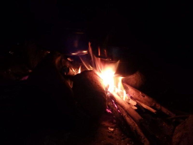 It was not long before the downpour was unleashed, just as we had finished putting together the indispensable. Obviously we did not find dry wood anywhere. But after much patience and a couple of old tricks we had our fire burning consistently.