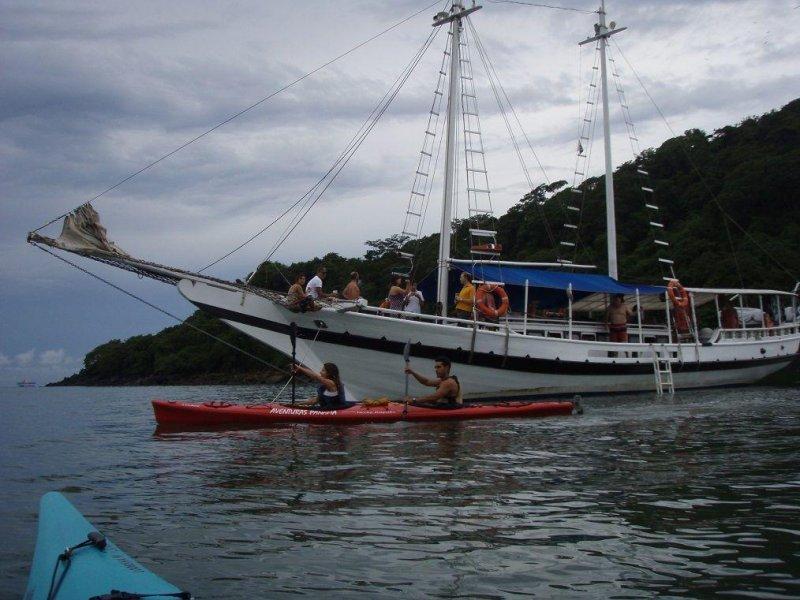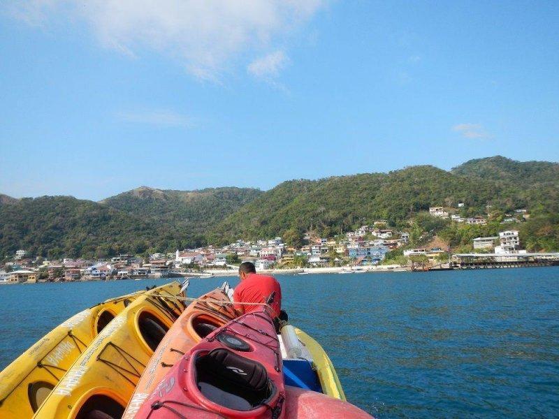 Our trip starts at 9:30 am at Taboga Beach, right in front of the Taboga Police Station which you will find turning left when exiting Taboga Pier. To get there you have different ferry alternatives that are supplied below. You should get to the departing dock in the Coastway Amador at least 45 minutes before departure time (allow for at least 1.5 hours before on weekends and holidays). You should also calculate 30 minutes to travel from Panama City Down Town to Amador Coastway from which both ferries depart. At your arrival to our meeting point we will assign you gear, and instruct you on navigation techniques and safety guidelines. We should start kayaking by 10:00 am and complete traveling around the island in 4 hours. Traveling time will vary depending on participant's skills, and weather conditions. Along the way we will be escorted by a motorboat in case someone wishes to quit or rest and for any other safety consideration - and more importantly, to make sure we make it back for your ferry leaving from Taboga. We take an about one hour break to have lunch and snorkel in places not accessible to regular Taboga visitors. You can plan to stay longer on the island or return to Panama City in the afternoon.